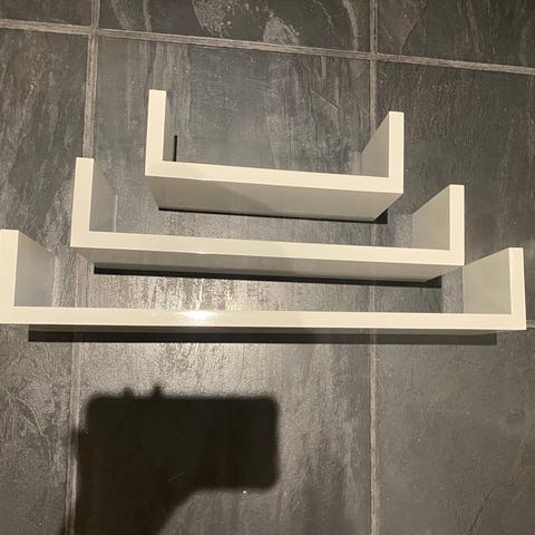 2 stk sorte vegghyller til salgs