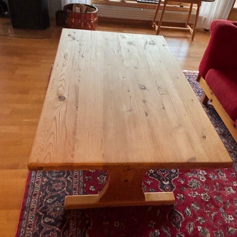 Selger et spisebord på 200cm siden jeg har kjøpt nytt, dette er et solid bord som er slipt ned for noen år siden og lagt gulvlakk på