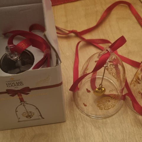 Fem stk flotte glassklokker med forskjellig dekor. Samleobjekt, gis ut én hver jul. Disse er fra 2003, 2008, 2010, 2012 og 2013. Design er Ann-Sofi Romme. Pris er per stk. Alle samlet kr 700. Kan sendes med PostNord for kr 69,-.