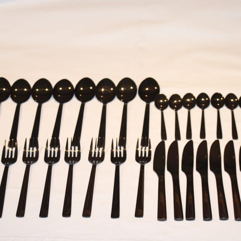 Helt nytt bestikksett fra Aida RAW i sort, 16 deler. Nypris 1099,-