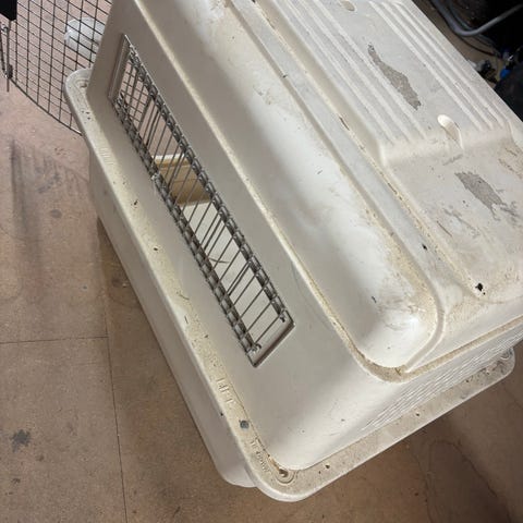 Selger et hunde/ flybur. Jeg har brukt dette som bur hjemme når jeg hadde hund. Det er stor og romslig og lett og montere og lett og vaske hvis uhell skjer. Det har plass til rottweiler også schæfer i den. Jeg har gitter foran og skuren, de ligge inne i tørk sted, burdet står i en bod i dag på lagring. Jeg har ikke målene her og no. Men jeg kan sende mål hvis det er ønskelig