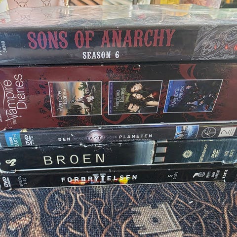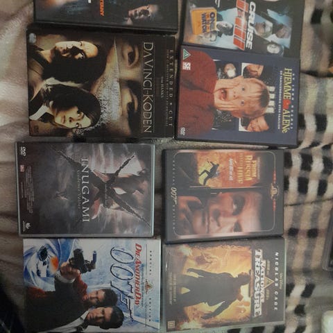 Samling av DVD-filmer med ulike titler og sjangre. Filmer i standard DVD-format, varierer i tema og innhold. Passer for samlere og filminteresserte. Noen av de har fortsatt plasten på.