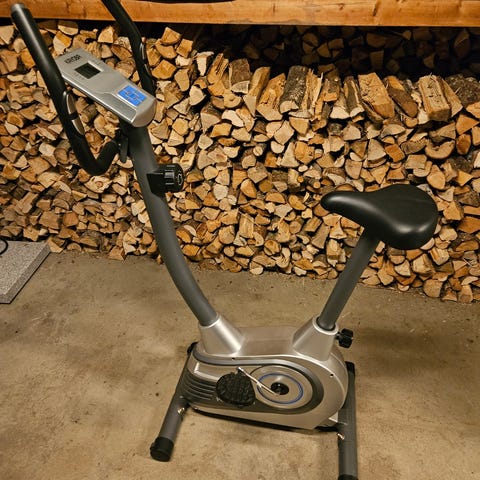 Body Bike Classic treningssykkel med svart og sølvfarget ramme. Sykkelen har justerbart sete og styre, samt pedal med fotstropp. Designet for innendørs trening.