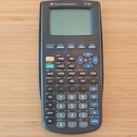 Texas Instruments TI-83 Plus kalkulator med svart farge. En grafisk kalkulator som brukes til avanserte matematiske beregninger og funksjoner.