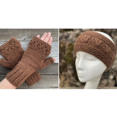 Sett med lue og pulsvanter /pulsvarmere, håndstrikket, nye
