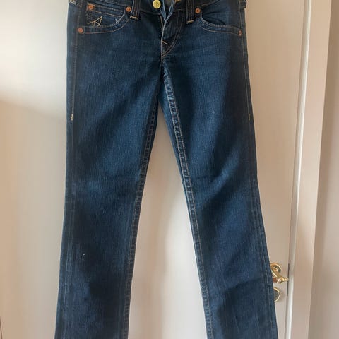 True Religion jeans for kvinner med midjemål W28. Laget av bomull. Buksen er laget før True Religion i Usa gikk konkurs og er laget i Usa. Buksene som lages nå er laget i Kina. Kun brukt noen få ganger.