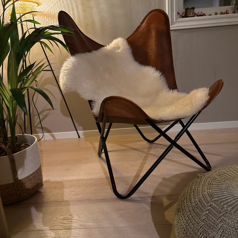 Pent brukt butterfly stol i congac farget skinn. Har blitt godt ivaretatt og pleiet.