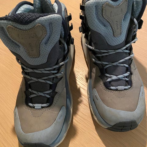 Hoka One One Fottur sko i størrelse 38 for dame. Skoene er designet for fotturer og har en slitesterk såle med godt grep. Fargene inkluderer nyanser av lilla og rosa. Materialet er pustende og egnet for utendørs bruk.