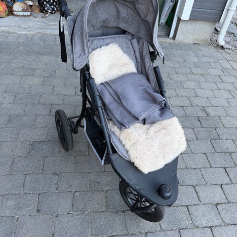 Baby Jogger barnevogn i rød farge. Brukt til to barn og har blitt oppbevart innendørs. Mye vogn igjen! Aldri punktert.