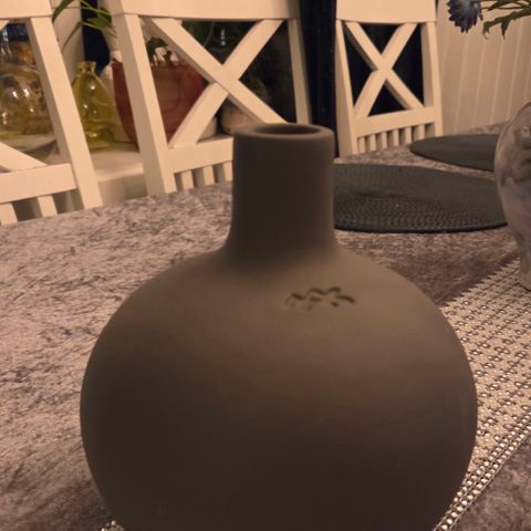 Selger tre stykker Kähler Globo lysestaker i størrelsene 13.5cm (liten), 16.5cm (medium) og ca. 19.5cm (stor). Fargen er matt mellomgrå. Det er noen bruksmerker på de.