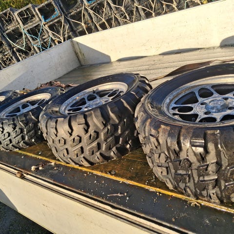 2stk (26x8.00R12) og 4 stk (26x10R12) ATV dekk selges. Dekkene er egnet for terrengkjøring/vei og har et mønster designet for godt grep i ulendt terreng. Dekkene har god mønsterdybde og har god levetid igjen.