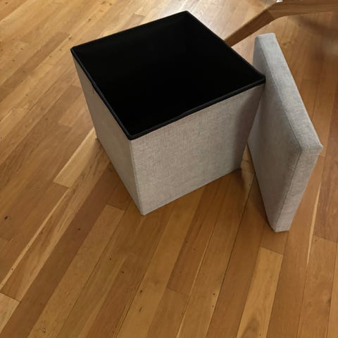 Pen og praktisk puff med oppbevaring. Ubetydelig brukt, og uten synlige skader. Løs pute kan også overtas.