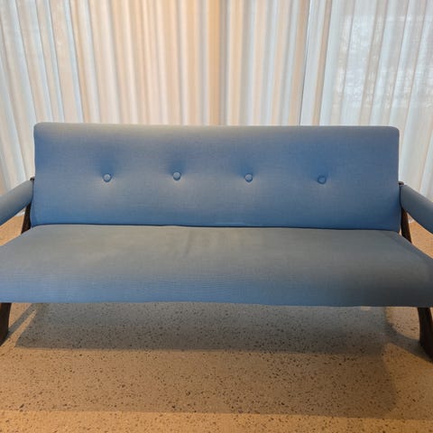 Sofaen har stått i gjesterom i et hus uten dyr og barn; fremstår derfor som ny.