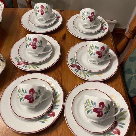 Selges samlet. Det er bruksmerker på serviset, men masse bruk igjen.