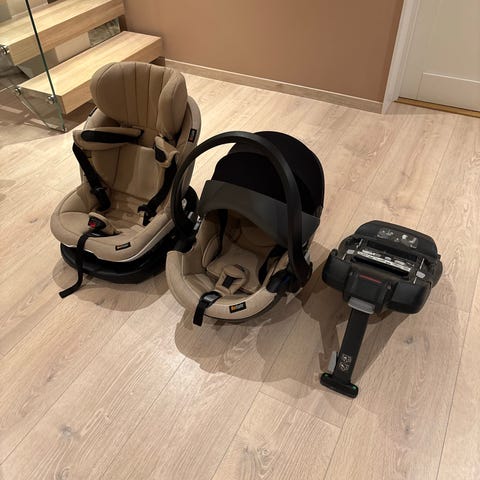 Selger også en pakke med babystol og barnesete med tilhørende base i samme farge i separat annonse.