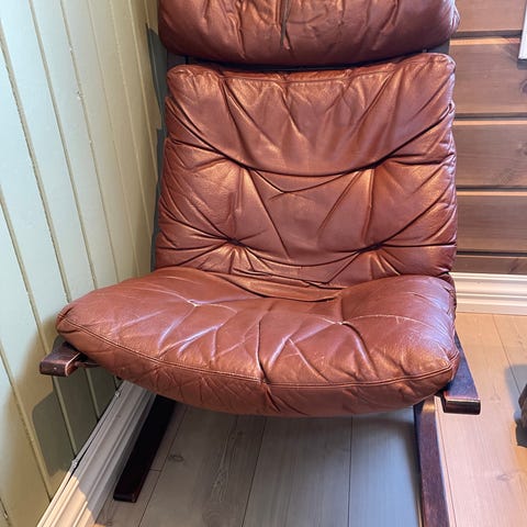 Selger en godt brukt Siesta stol. Den er klar for renovering og litt kjærlighet:-) Finnes ingen merker eller stempler så her må kjøper ta den i øyesyn selv.