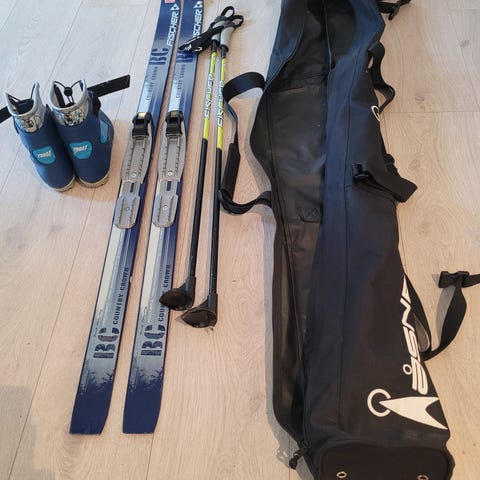 Smørefrie ski til barn 100cm med to sett staver og solide Madshus sko