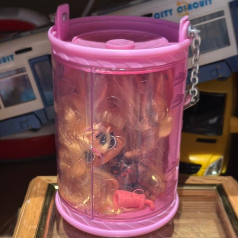Diverse barneleker, spill med ulike tilbehør og dukker. Inneholder flere oppbevaringsbokser og ulike leker for barn.