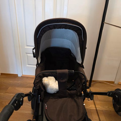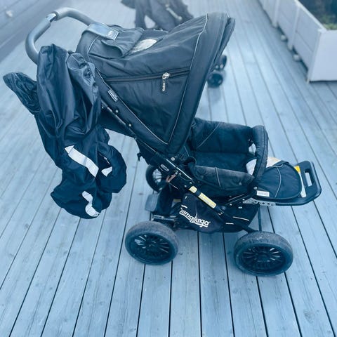 NB BREMSENE VIRKER IKKE. Mulig de kan repareres, hvis ikke er nok vogna best for utesoving på balkong eller lignende.