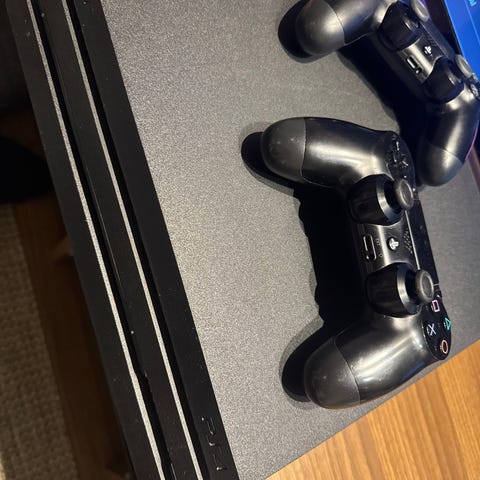 PlayStation 4 med kontrollere og spill