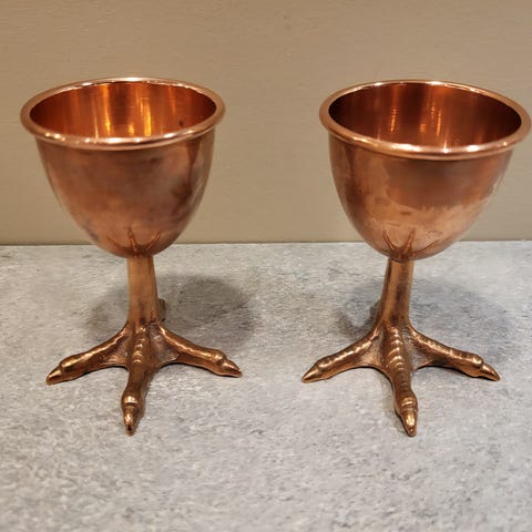 To gamle kobberbeger, kan f.eks. brukes som eggeglass i påsken
