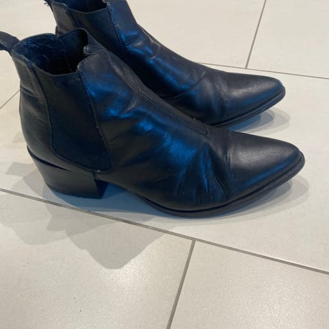 Støvlene er spansk produsert i størrelse 39, svart skinn. Støvlene har glidelås på innsiden for enkel på- og avtaking. Sålen har mønster for bedre grep. Egnet for hverdagsbruk.