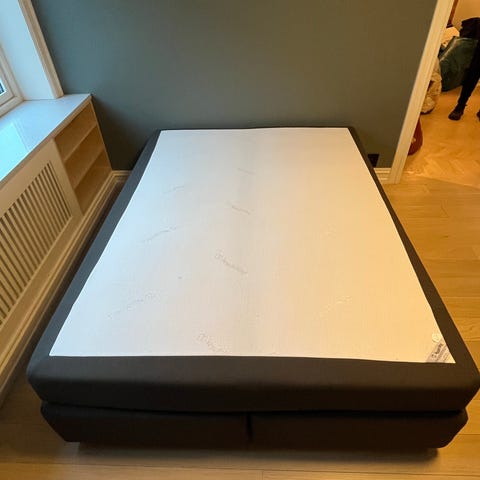 Sengen er i meget god stand, uten skader eller flekker. Veldig mye plass under senga for oppbevaring.