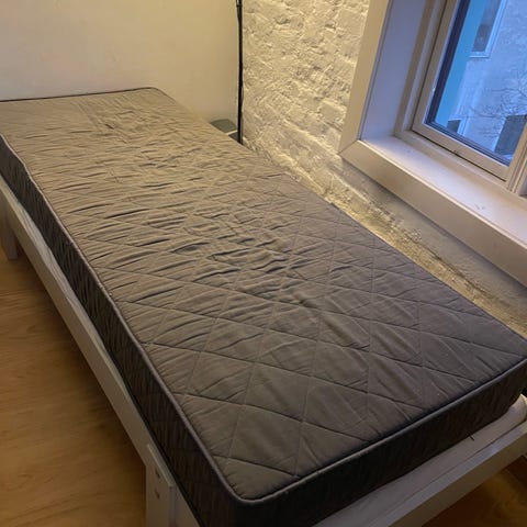 Sengekappe i grå farge (Ellos) medfølger hvis ønskelig (ikke på bilde).