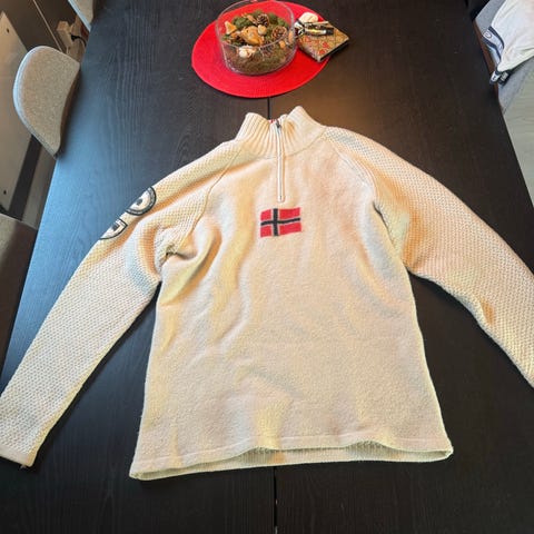 Amundsen Ull genser i beige farge, størrelse XL for menn. Laget av ullmateriale, egnet for kaldt vær og utendørs bruk.