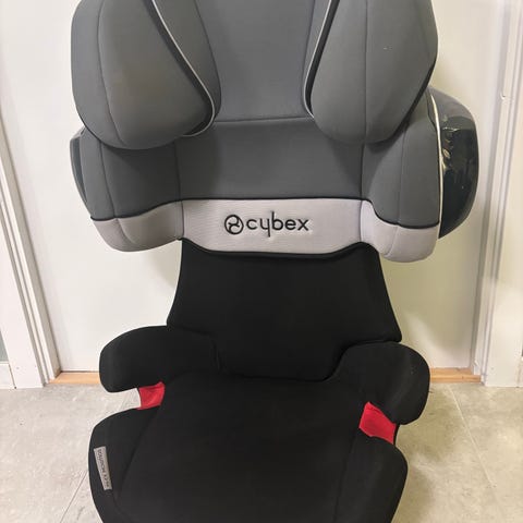 CYBEX Barnesete med vekt 15-36. Setet er utformet for barn og har en svart farge. Det er laget av slitesterkt materiale og har justerbare sider for tilpasning og sikkerhet.