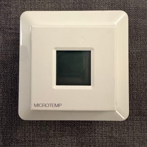 En stk thermostat for varmekabler av typen Microtemp MTC-1991 selges. Den regulerer gulvvarme temperaturen ved hjelp av temperatursensor som er plassert i gulvet. (Temperatursensor felger ikke med).