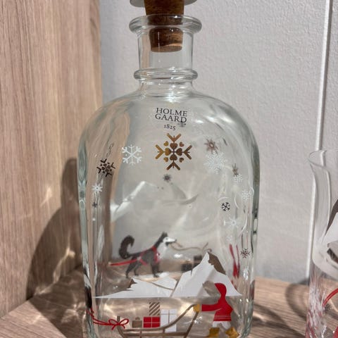 Holmegaard sett med Juleflaske og 8 drammeglass fra Holmegaard 1999