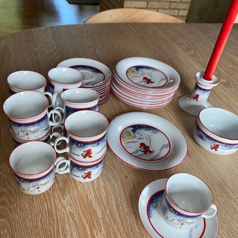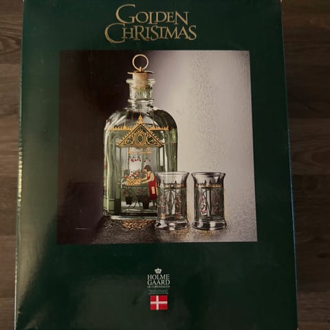 Holmegaard sett med Juleflaske og 8 drammeglass fra Holmegaard 1999. Ubrukt.