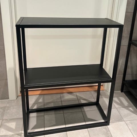 Selger en svart hylle/konsollbord. Passer fint i stue, gang eller soverom.