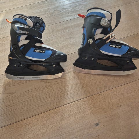 Frost Ishockey skøyter for barn i størrelse 29-32. Skøytene er designet for å kunne vokse i. Farge er svart, blå og grøn. Materialet er tilpasset for å gi støtte og komfort under bruk.