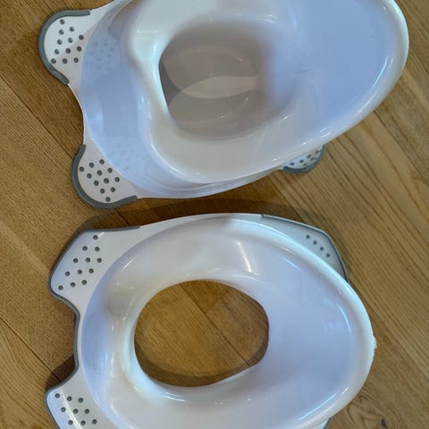 Barnesete toalettadapter med blomstermønster. Passer til bruk som hjelpemiddel for barn under toalettbesøk. Laget i plastmateriale med dekorative blomsterdetaljer.