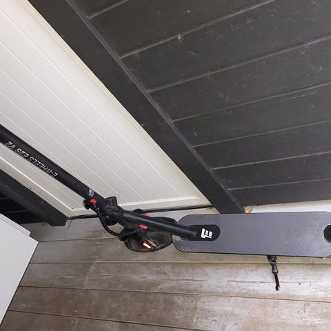 E-Wheels E2S V2 elektrisk sparkesykkel med punkteringsfritt dekk bak. Bremsenne er slitte og det er problemer med låsemekanismen som holder rattet. Den er lite brukt de siste årene så vet derfor ikke hvor bra batteriet er lengre. Resten fungerer fint men den selges derfor billigt