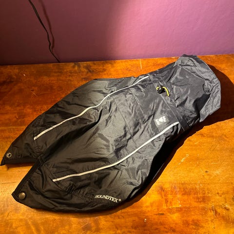 Hurtta regndekken til hund i størrelse 21. Fargen er svart. Laget av vanntett materiale med refleksdetaljer for synlighet. Designet for å beskytte hunden mot regn og fuktighet.
