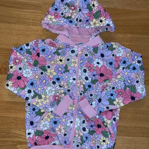 Polarn O Pyret hettejakke med enhjørning print. Str 122 (6-7år). Hetten er festet med knapper og kan lett taes av/på etter ønske.