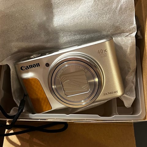 Selger mitt Canon PowerShot SX740 HS kamera. Det er veldig pent brukt og fungerer helt perfekt. Har blitt godt tatt vare på og har ingen skader.