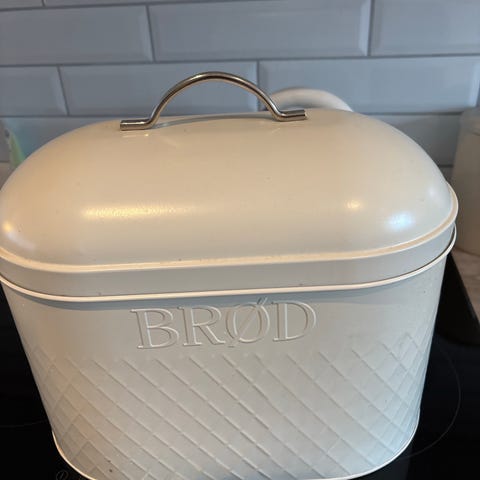 IKEA brødboks i rustfritt stål. Designet for oppbevaring av brød og bakervarer, med håndtak for enkel åpning og lukking.