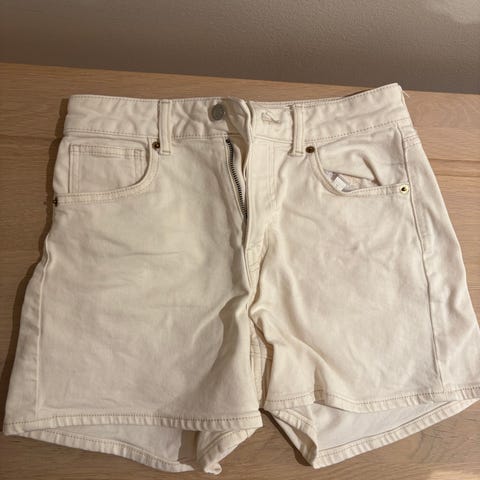 Hvit shorts fra NA-KD str L. Highwaist. Liten flekk på ene baklommen, ikke prøvd å vaske vekk