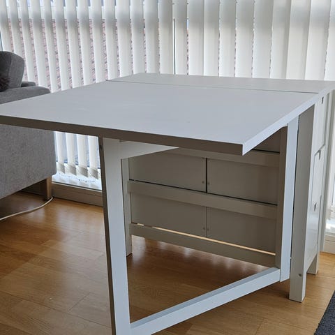 Bordet er også kjekt til mindre kjøkken der man ikke har plass til større bord, og som er enkelt å minske når man trenger større plass i rommet. Og veldig kjekt som hybel spisebord, eller til dem som har unger eller barnebarn, der ungene kan bruke bordet som tegnebord, og ha tegnesaker, perler, nabbii, gjemt i skuffen, og/el lignende…!