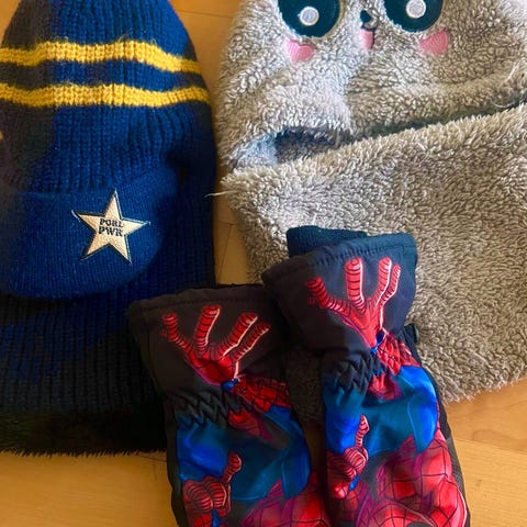 Liten klespakke str 128: Marvel Avengers hettegenser, Superman tøfler str 28/29, jeans - godt brukt Helly Hansen vinterjakke medfølger.