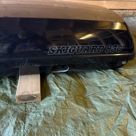 Pent brukt Skiguard 830 Touring skiboks til salgs pga. behov for bytte av skiboks ved overgang til ny bil. Boksen har aldri stått på bilen en hel sesong men montert på og av ved behov. Skiboksen har innvendige skiholdere for 6 par ski. Boksen er benyttet på BMW med takrails.