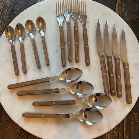 Selger et pent og solid vintage bestikk i sølvplett med mørke håndtak. Klassisk og tidløst design som passer godt både til hverdagsbruk og pent dekket bord.