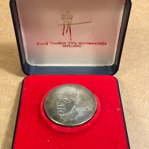 Kong Haakon VII Minnemedalje utgitt for perioden 1872-1957. Medaljen leveres i et etui med rød fløyelsfôr og hvit innside med tekst og emblem.