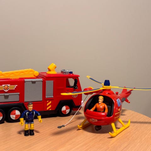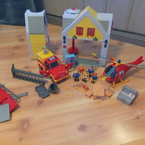 Brannmann Sam’s brannstasjon med et fly, en brannbil, en redningsbil og en «gammel» brannbil. 7 figurer følger med samt div utstyr til figurene.