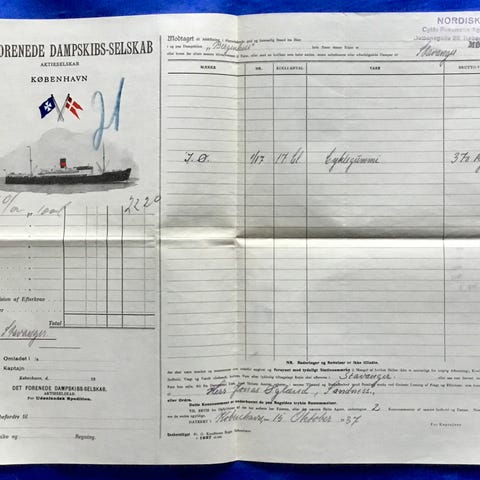 S/S «Trondhjem» DFDS 1938 - Fraktbrev-Cykleslanger til Jonas Øglænd, Sandnes