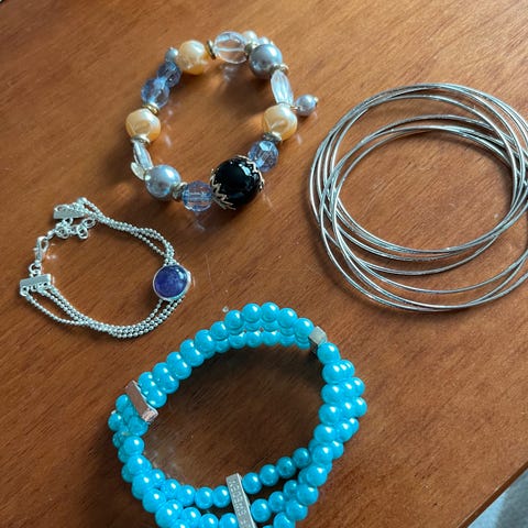4 stk armbånd og 3 halskjeder selges samlet kr 200,- + evt porto